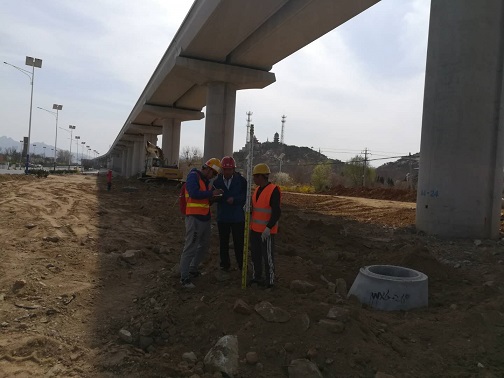 即墨藍(lán)色新區(qū)龍山西路北延工程現(xiàn)場,